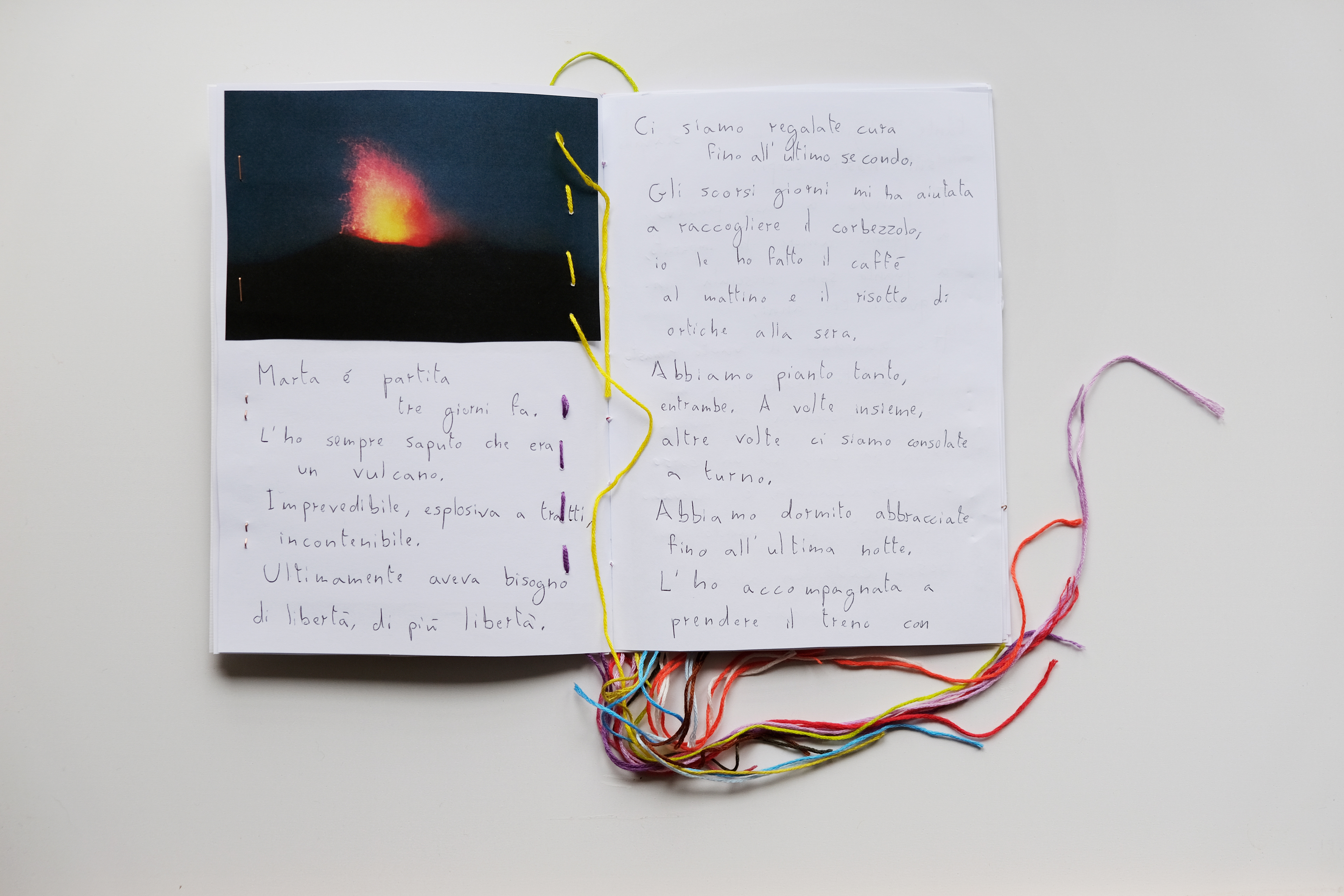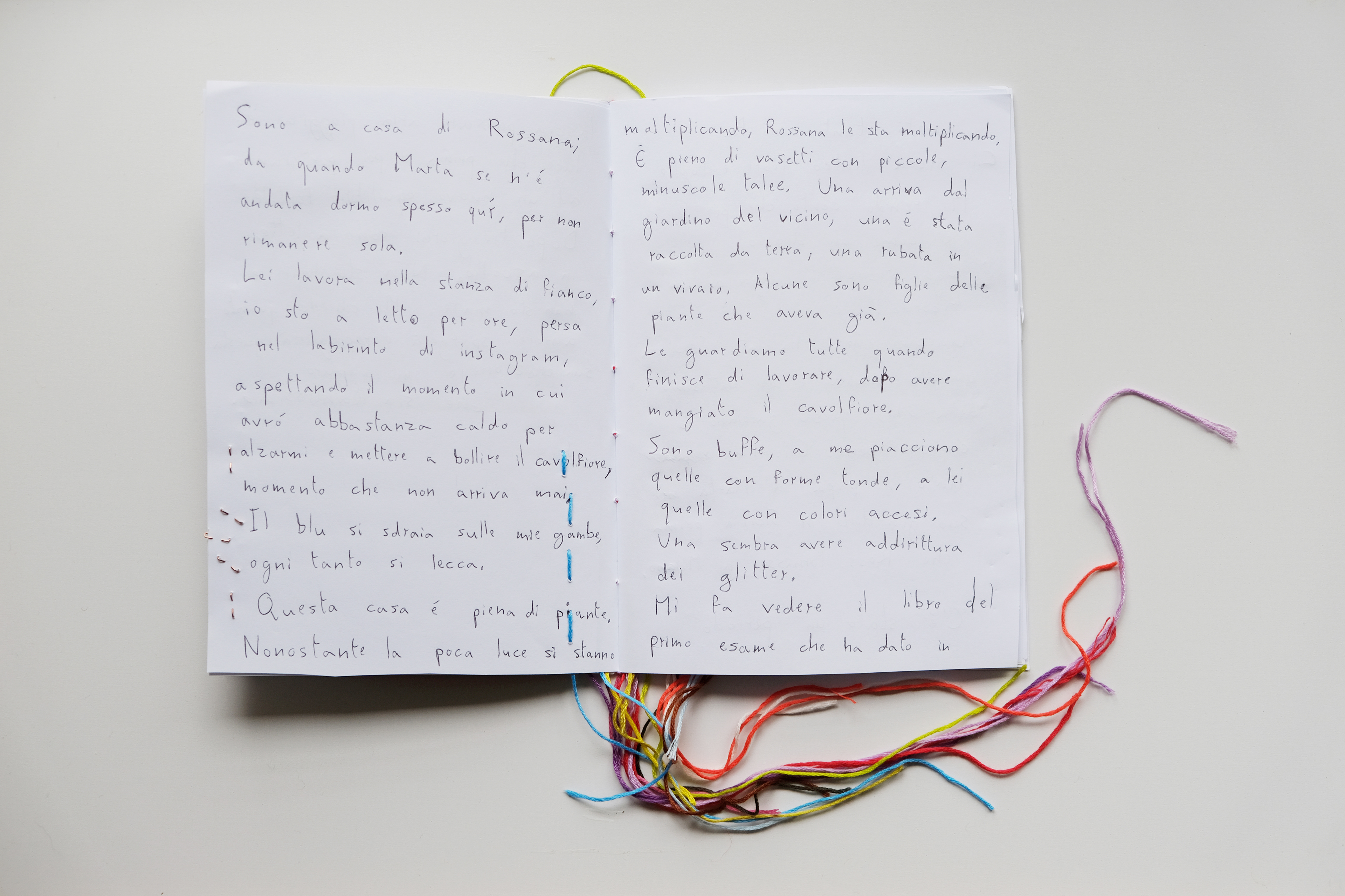 Ogni copia è interamente realizzata, cucita e scritta a mano.
